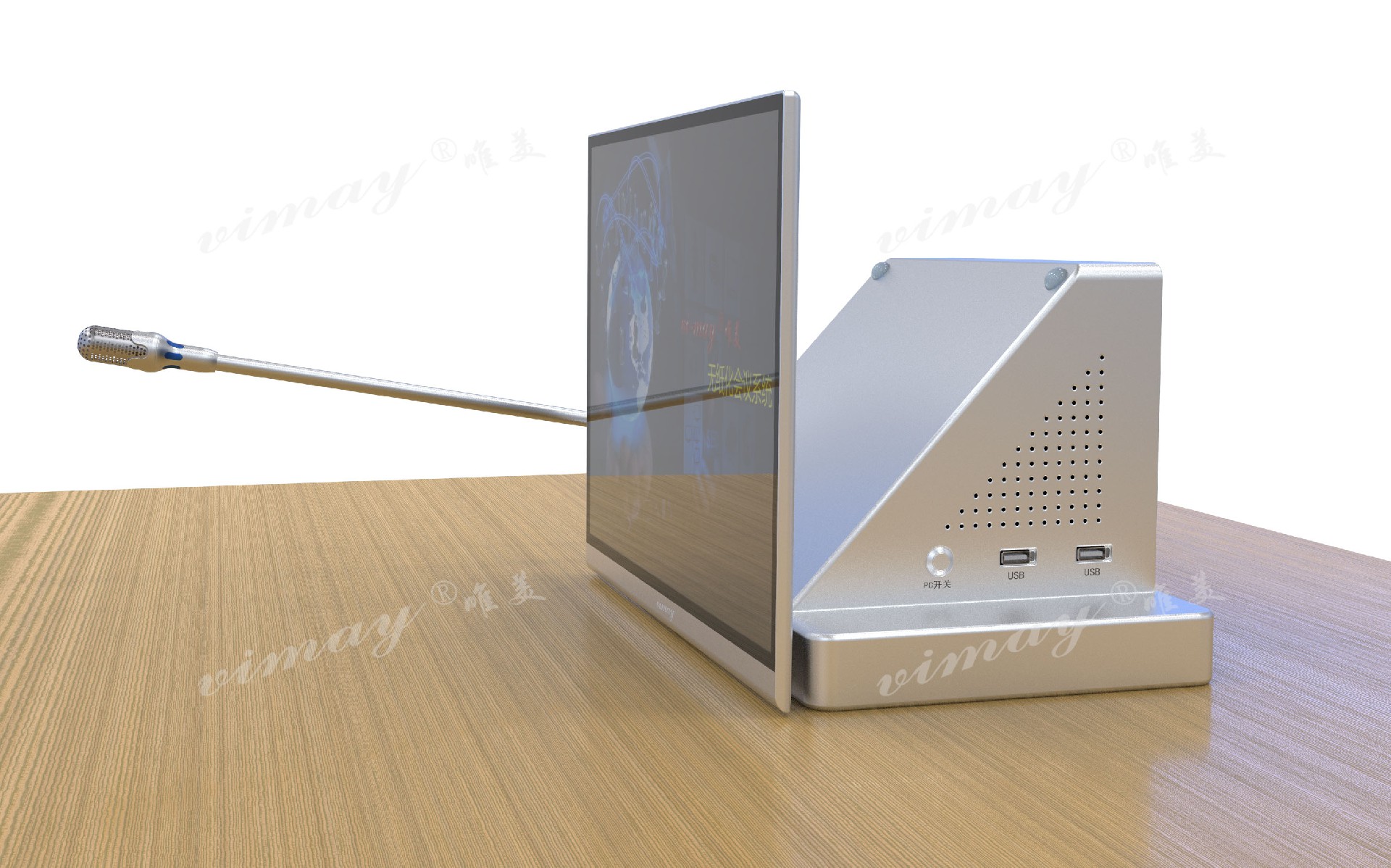 1.前后顯示屏與箱體及話筒完美集成為一體,前屏15.6寸,屏可單獨(dú)翻轉(zhuǎn),分辨率為1920*1080P,后屏為10.1寸小屏,分辨率為1024*600P